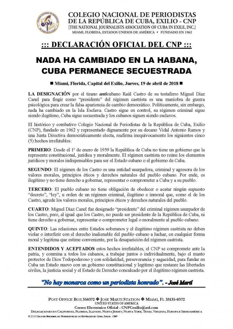 POB 350372 | Jose Marti Station | Miami, FL 33135-0372 | 786-286-8787 | cnpcexilio@aol.com